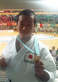 | 舟久保絢哉 山梨学院高校→同志社大学1年 明見中学校出身 ◎全少男子形5・6年連続優勝 ◎全国高校総体個人形3位 ◎糸東流世界大会14歳以下の部優勝 |